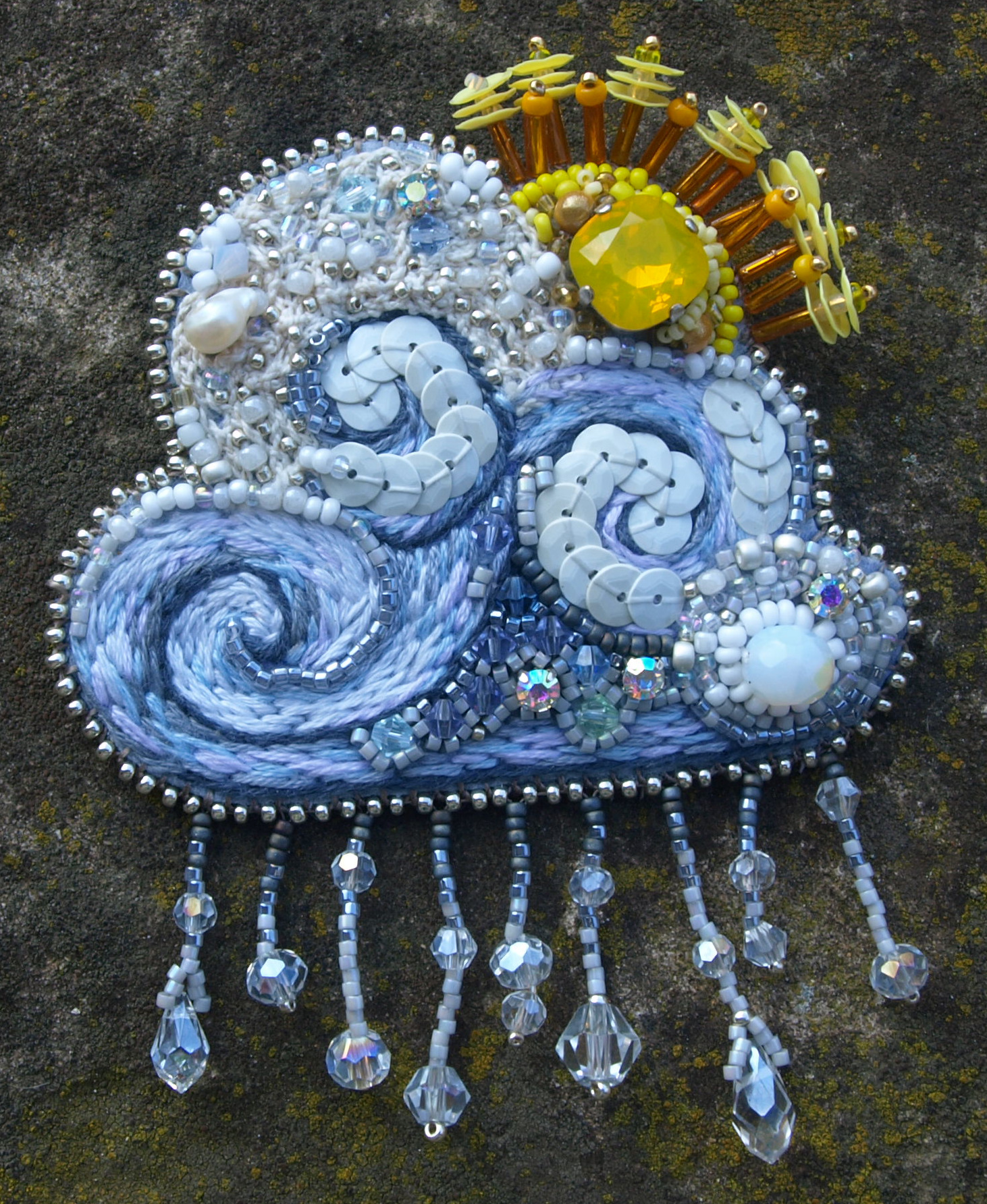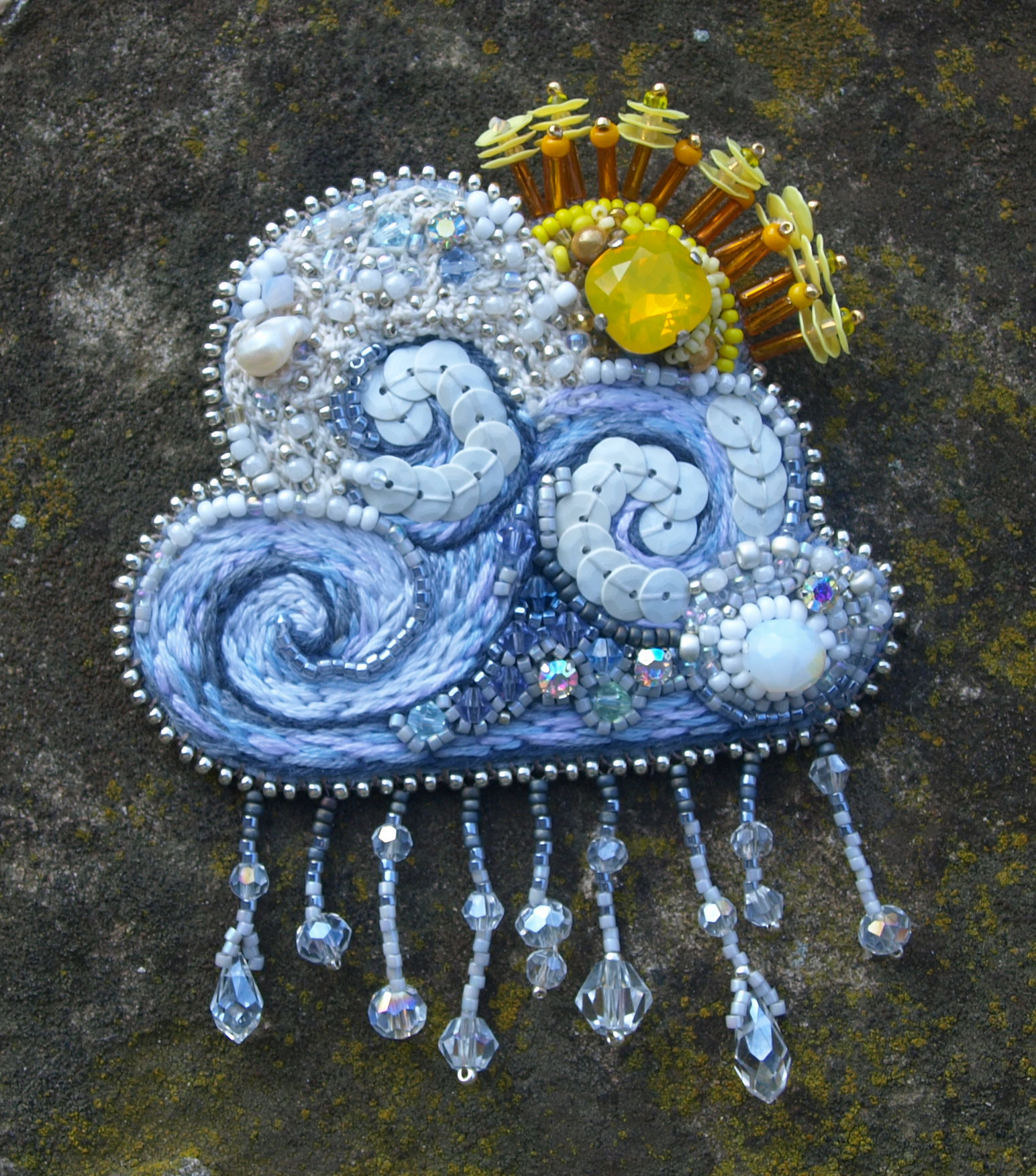 Le nuage , le soleil et la pluie. Broche.